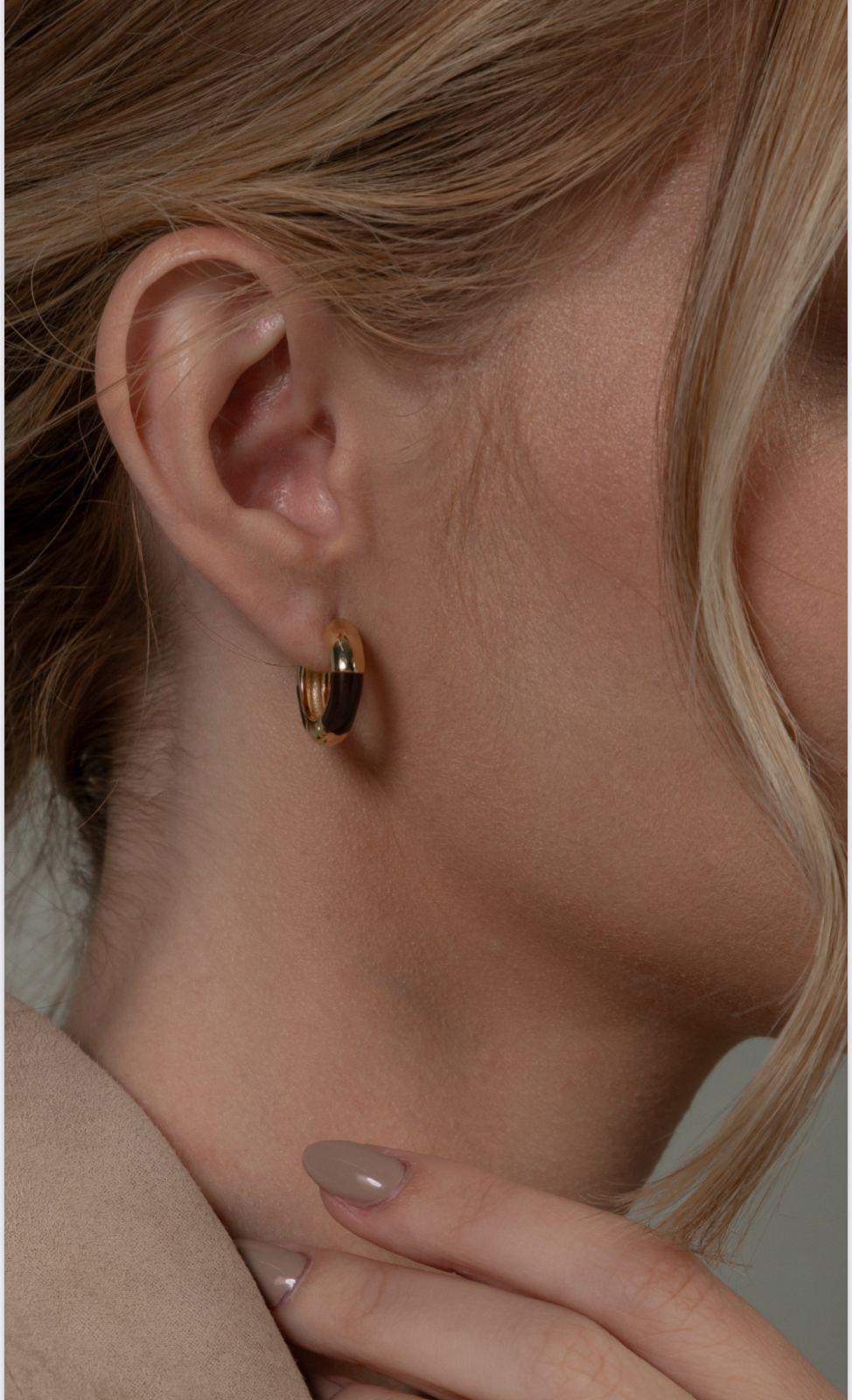 Argola na semi jóia com banho de ouro amarelo 18k antialérgico e detalhes esmaltados marrom.