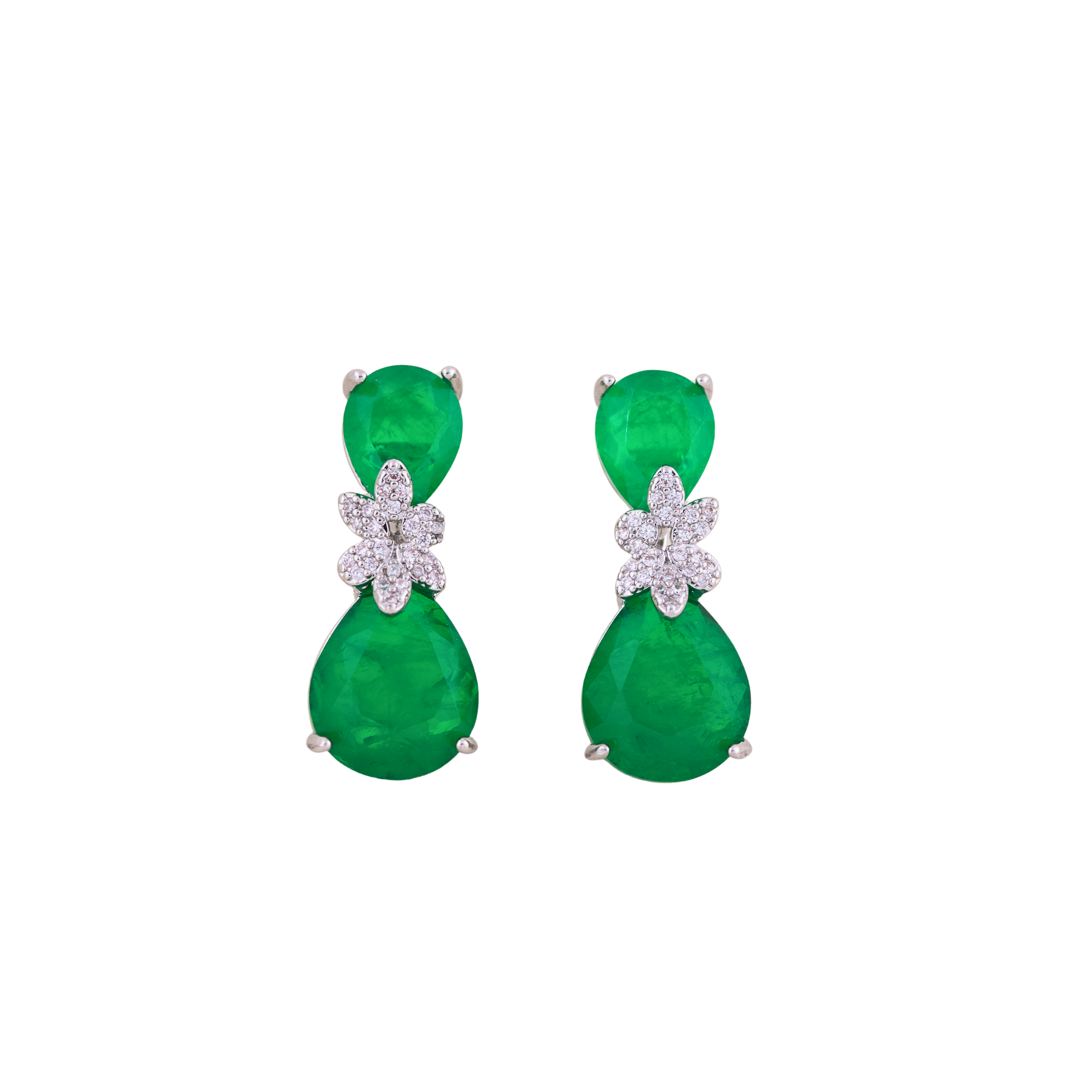Brinco na semi joia com banho de ouro branco antialérgico, cravejado com zircônia e esmeralda fusion e 1 ano de garantia.