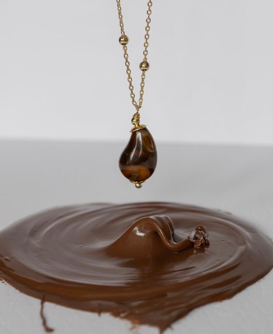 Colar gota na semi joia com banho de ouro amarelo 18k antialérgico e pingente de olho de tigre e 1 ano de garantia.